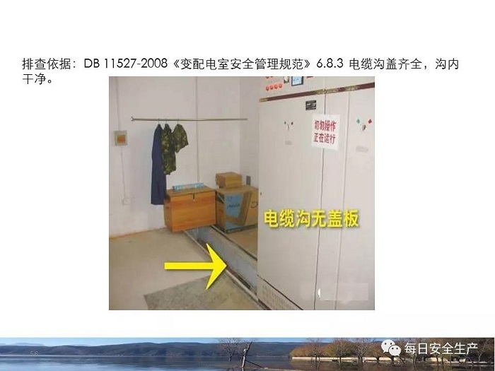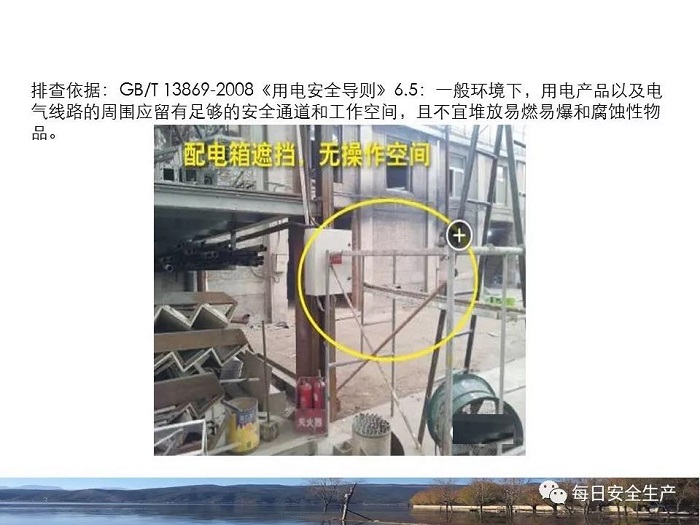 8.1.6規(guī)定配電箱、開(kāi)關(guān)箱周圍應(yīng)有足夠2人同時(shí)工作的空間和通道,不得堆放任何妨礙操作、維修的物品,不得有灌木、雜草。
